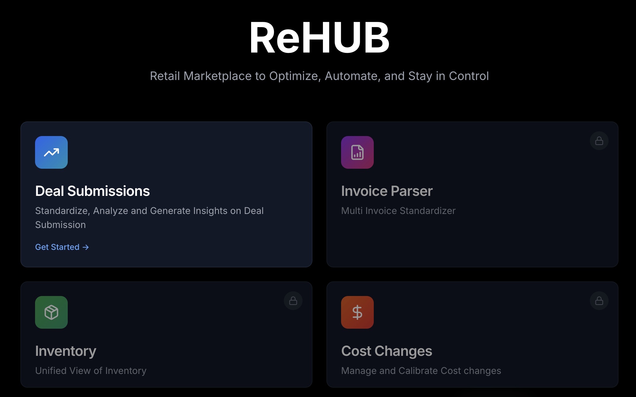Marketplace solutions for Retailers to efficiently manage operations - Deal submission, Invoice Parsing, Order And Inventory Management Drive operational efficiency - Inventory/Sales/Deals Minimize Shrinks Standardize Deals NLP Talk to Data